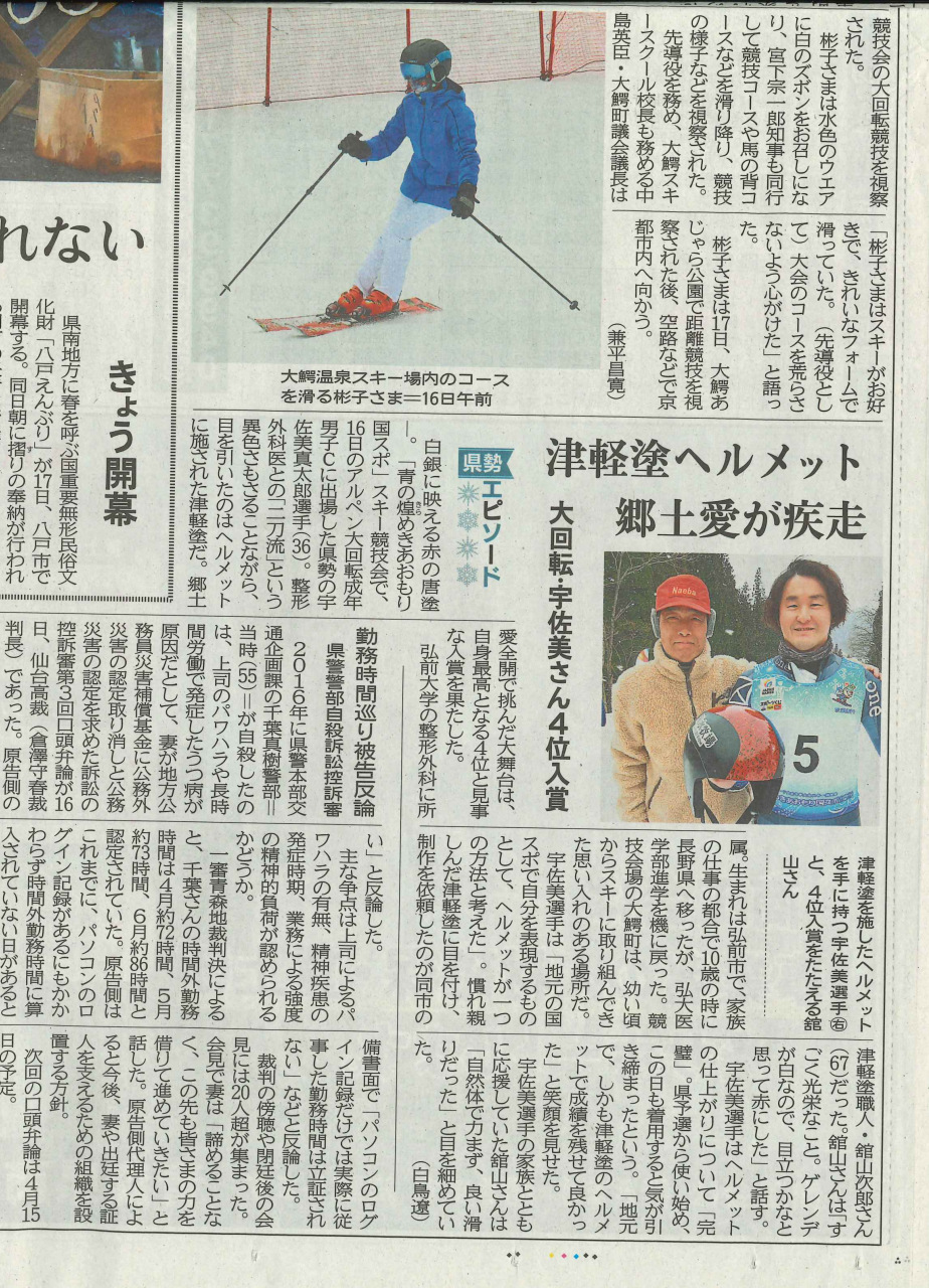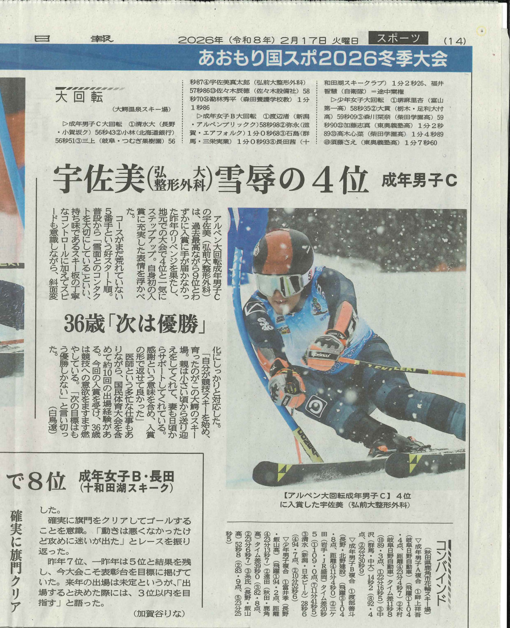 2026年2月16日に青森県大鰐町で開催された、第80回国民スポーツ大会冬季大会スキー競技会GS(成年C)に出場し、4位入賞しました。前回大会の悔しさをバネに、地元開催の国スポで最高のパフォーマンスを出すことができました。大会に向けて、ご協力・ご尽力いただいたすべての方々に心から感謝いたします。